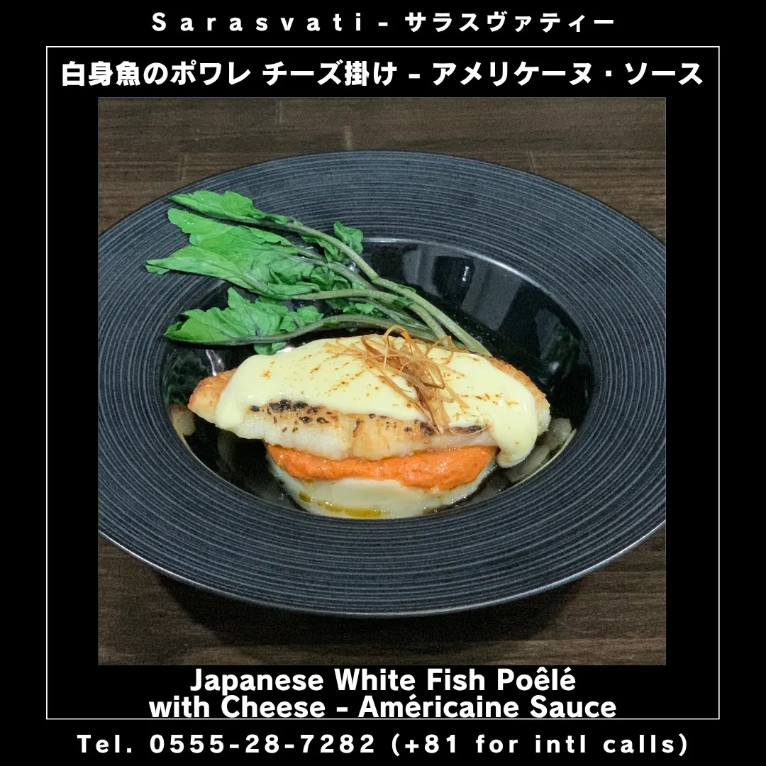 「白身魚のポワレ チーズ掛け - アメリケーヌ・ソース -」...